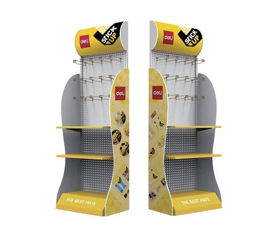 Prezentační stojan na lepící program značky Deli- marketingové upoutávky po stranách stojanu a potištěná měkčená deska nahoře jsou odnímatelné- počet polic: 2 (mohou být odstraněny dle potřeby)- počet háků: 40 (bez cedulek na cenu)- rozměr: 200*60*40cm- materiál: kov- dodáváno bez produktů- stojan je dodáván bezplatně na základě smlouvy o zápůjčce