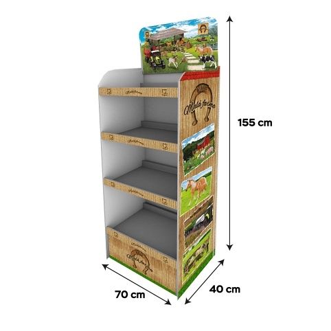 Prezentace výrobků je důležitá, proto je u nás k dispozici tento papírový stojan v designu kolekce Moje malá farma. Rádi byste si tento stojan umístili k Vám na prodejnu? Stojan je k dispozici k propůjčení ZDARMA v případě objednávky produktů Moje malá farma v minimální hodnotě 4 000 Kč bez DPH. Kontaktujte svého obchodního zástupce anebo centrálu společnosti pro více informací.