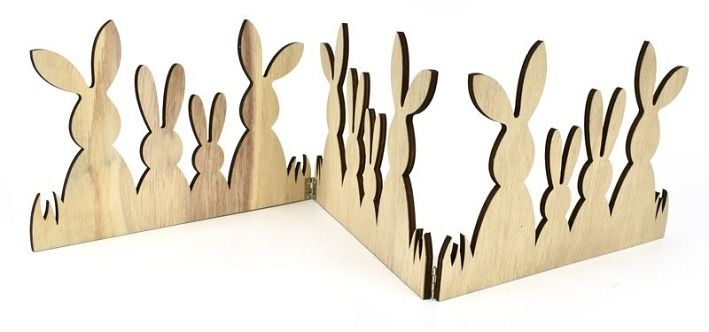 Jaro se blíží a s nimi i jarní dekorace. Tato dřevěná dekorace vás okouzlí. Je tvořena ze 3 dílů dřevěných výřezů ve tvaru zaječí rodinky. Díly jsou vzájemně spojeny panty, tedy je můžete libovolně rozevírat podobně jako paravan.