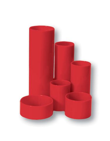 6-ti dílný stojánek na tužky a kancelářské potřeby. Dodáván v červené barvě.