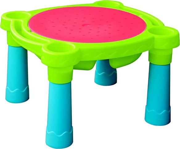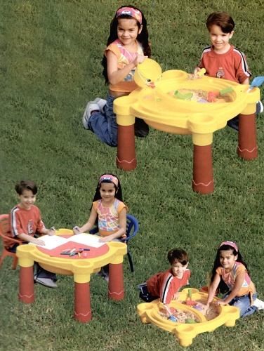 Stoleček s odklápěcí vrchní deskou,pod ní nádržky na vodu,písek, dle aktivit, které Vaše dítě preferuje.V rozích otvory pro všechny potřebné pomůcky – bábovičky,lopatky,pastelky,malé loďky…