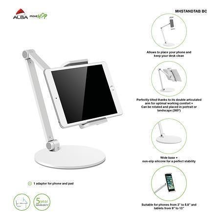 Stolní držák na telefon "BAF87", desktop, ergonomický, bílý, ALBA MHSTANDTAB BC