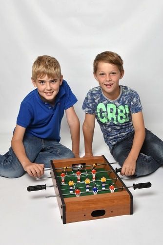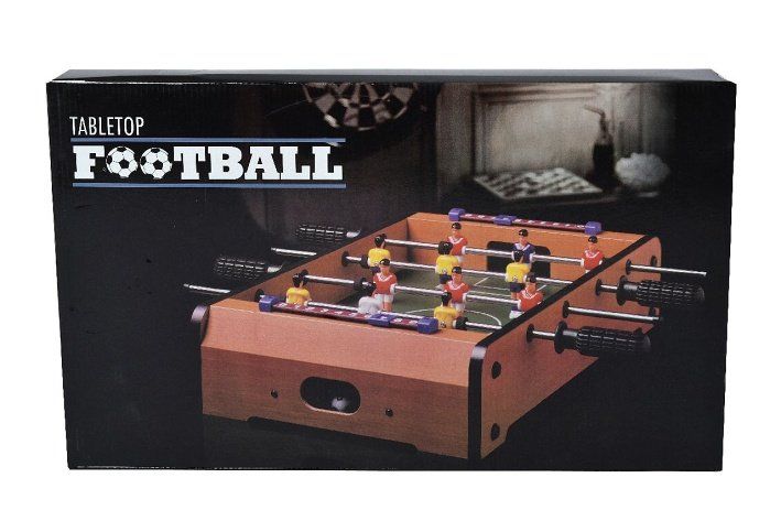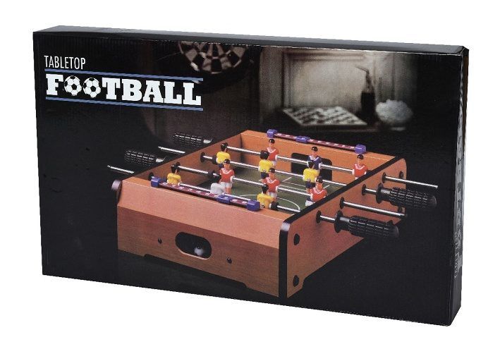 Tento menší stolní fotbálek je určen pro zábavu a trénuje motoriku a koordinaci rukou a očí! Vybavený 6 figurkami na každé straně určitě hráče nadchne skvělými souboji na stole! Hračka je vyrobena z barevného a lakovaného dřeva. Fotbálek je vybaven počítadly gólů a je dodáván včetně 2 míčků.