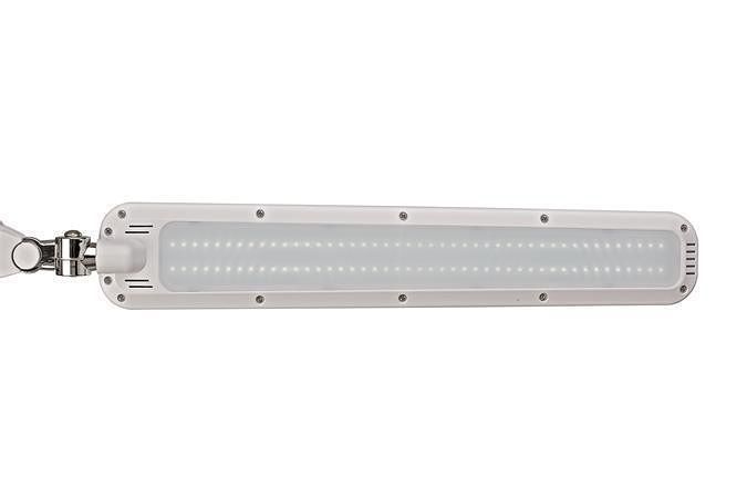Vlastnosti: stolní; vestavěné LED žárovky, které nelze vyměnit; plynule stmívatelné; nejmodernější technologie LED; robustní kovové rameno z trubkové oceli s vnitřní pružinou; masivní svorka s ocelovou vložkou; otočné rameno o 360°a sklopné o 110°; trojrozměrně nastavitelná hlava lampy; optimalizovaná ochrana proti oslnění;