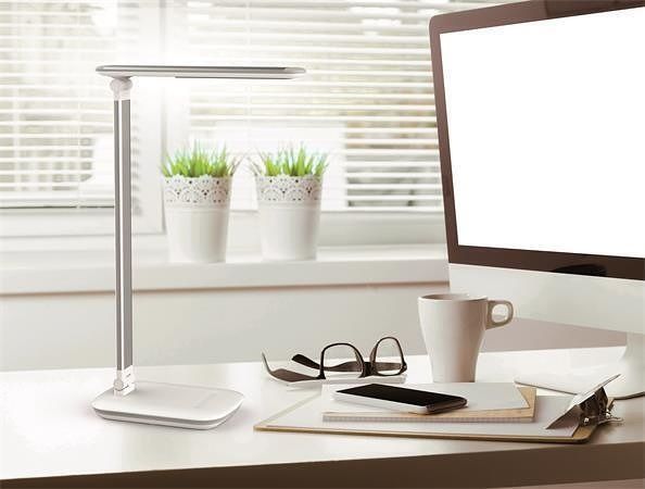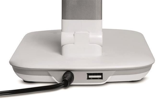 Kompaktní stmívatelná stolní LED lampa s integrovaným 5V, max. 500 mA USB připojením typu A pro nabíjení smartphonů.