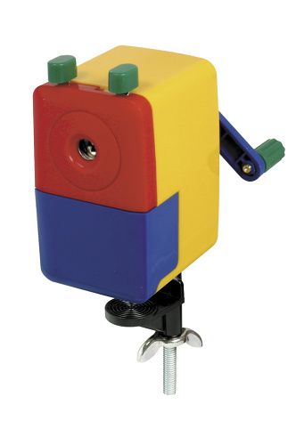 Ořezávací strojek s upevňovacím mechanismem na pracovní desku ve veselých pastelových barvách. Automatické posouvání tužky při ořezávání.