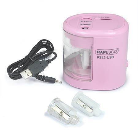 Stolní ořezávátko "PS12-USB", růžová, 2 otvory, baterie/ USB, RAPESCO