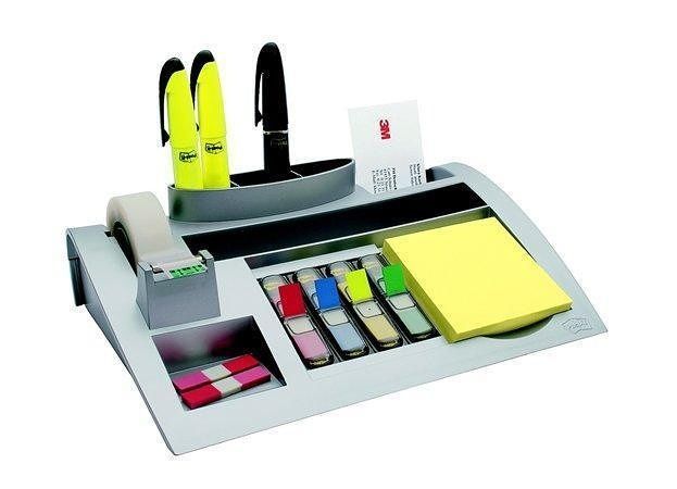Na odkládání lepicí pásky, záložek, telefonu, kalkulačky, 4 ks Post-it úzkých záložek, 1 ks Scotch "Magic" lepicí pásky, 1 ks Post-it samolepicího bločku