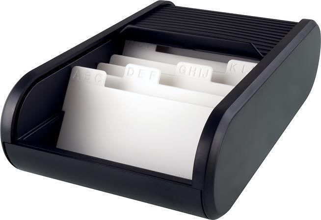 Stolní vizitkář s rolovacím zavíráním.