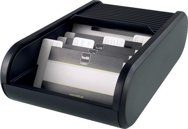 Stolní vizitkář, černá, zavírání typu roleta, s rozřaďovačem, 300 vizitek, HELIT