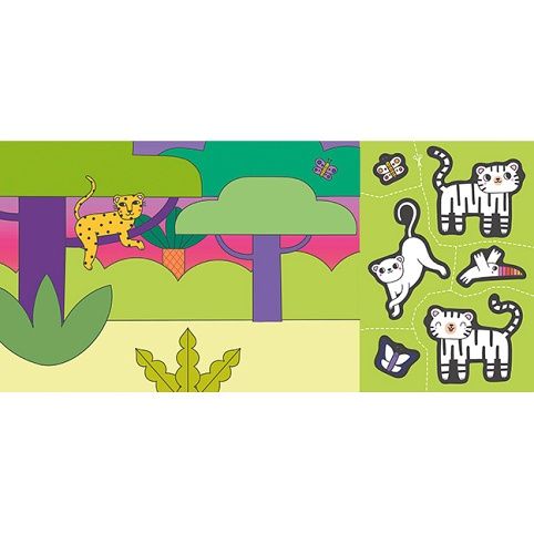 Titul obsahuje 8 složených obrázků s barevným pozadím a oddělitelným listem s obrázky k domalování,vystřižení a dolepení na barevné pozadí.