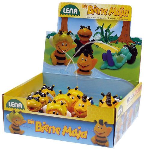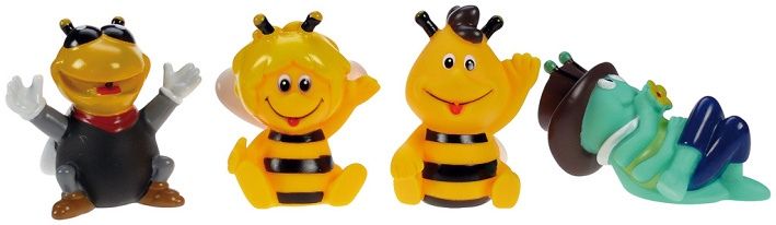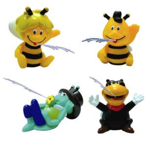 Stříkající zvířátka na motivy Včelka Mája. Stačí nabrat vodu, zmáčknout. 4 druhy postaviček o velikosti 5×8×5 cm. Vyrobeno z kvalitního nezávadného materiálu. Věk 0+.