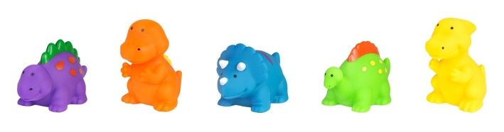 Různě barevné provedení měkkých dinosaurů vhodné i pro nejmenší. Po naplnění vodou a stisknutí dinosauři stříkají vodu.