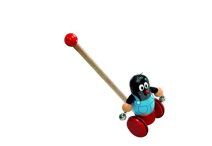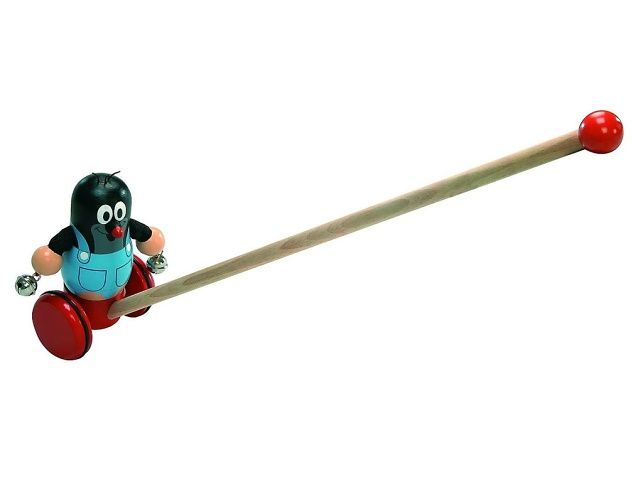 Strkadlo Krtek je ideální hračka pro každé dítě. Krteček se při pohybu kolébá ze strany na stranu a cinká rolničkami. Vhodné pro děti od 1 roku. Výrobek je zdravodně nezávadný. Rozměry výrobku 100 × 560 mm.