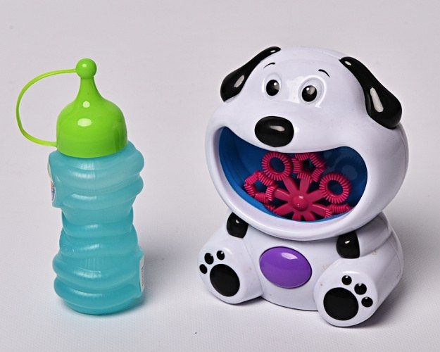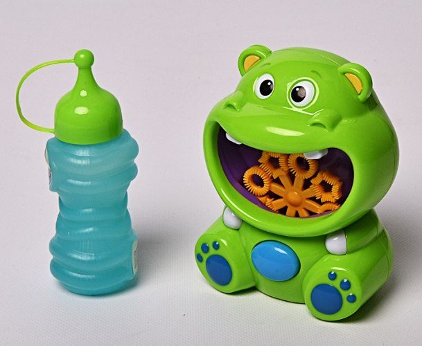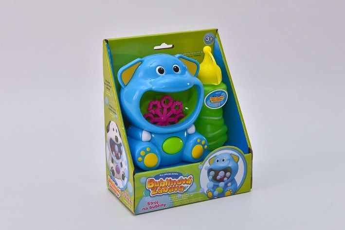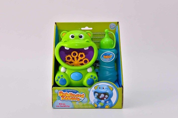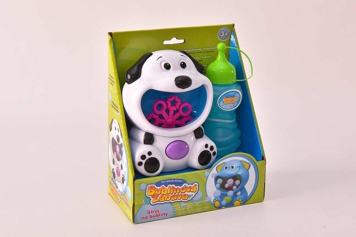 Stroj na bubliny s motivem zvířátka. Nalij bublifuk do strojku a sleduj, kolik se valí bublin. Hodně bublin bez námahy.