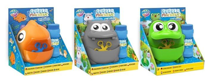 Stroj na bubliny zvířátka + 50ml bublifuk – tři druhy zvířátek. Na baterie: 2x AA (nejsou součástí balení)