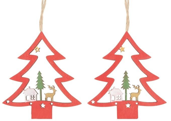 Strom dřevěný červený 8 cm k zavěšení, 2 ks