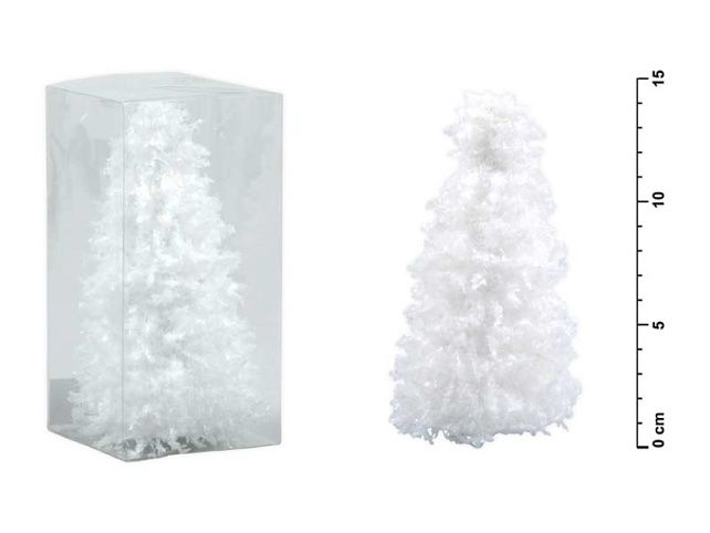 Vánoční dekorace - bílý stromeček s třpytkami Vhodné jako dekorace na okno, stůl, poličku aj. Rozměr: 14,5 cm Uvedená cena je za 1 ks.