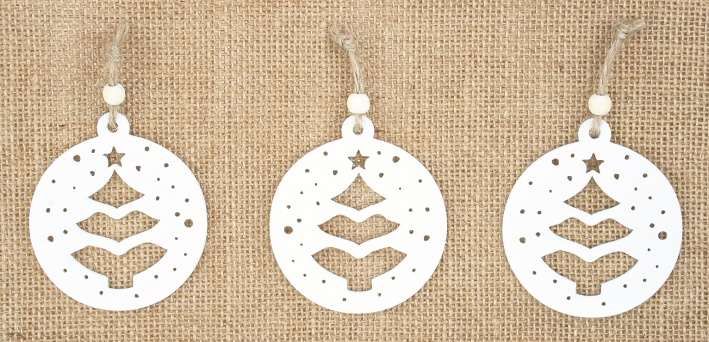 Stromek dřevěný bílý 6 cm 3ks, na zavěšení