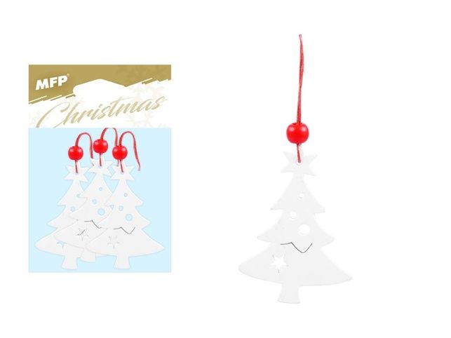 Vánoční dekorace - stromeček bílý s červeným korálkem vyřezávaný BALENÍ OBSAHUJE: - 3ks bílých stromečků Vánoční ozdoba je opatřena provázkem na zavěšení. Můžete ji použít na ozdobení vánočního stromečku, zavěsit na dveře, okno, nebo jinak zkrášlit Vaše bydlení. Uvedená cena je za 1 balení.
