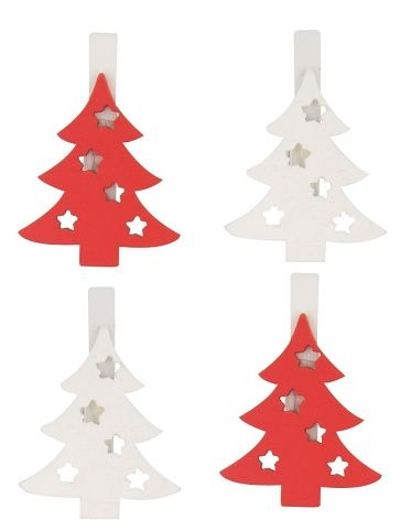 Stromek dřevěný na kolíčku 4,5 cm, červený a bílý, 4 ks