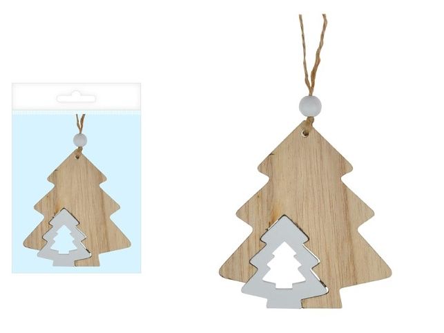 Dřevěná vánoční dekorace ve tvaru vánočního stromečku s poutkem/závěsem. Ideální na zavěšení do okna nebo jako vánoční ozdoba.