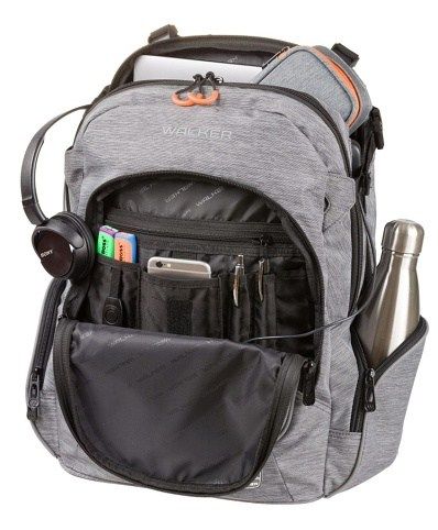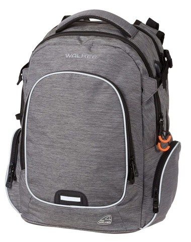 Studentský batoh WALKER CAMPUS EVO patří ke špičce ve své kategorii. Je tříkomorový s velkou přední kapsou na zip. Ta je jednoduchá bez dalšího vnitřního členění. Zadní komora je z obou stran polstrovaná pro bezpečné uložení notebooku nebo většího tabletu. Prostřední komora má v horní části kapsičku na mobil nebo power banku. Součástí je i šňůra s USB konektorem, která vyúsťuje v USB port na vnější straně středového věnce. V horní části tohoto věnce je široké pevné madlo. Velikost obou komor lze regulovat bočními kompresními popruhy. Přední komora, uzavíraná jako obě předchozí zipem, má uvnitř přes celou šířku velkou kapsu na zip, na které je našitý bohatě členěný organizér, který se skládá ze dvou kapsiček a přihrádek na psací potřeby. Na jedné kapsičce je odnímatelná spona s kroužkem na klíče a druhá je uzavíratelná suchým zipem. Po obou bocích batohu je kapsička na zip. Jedna je jednoduchá, ve druhé je síťka s košíkem na uložení lahve na pití. Batoh má bohatě polstrovaná, anatomicky tvarovaná záda. V horní části zádového dílu je umístěno speciální odvětrávání . Nad ním je ještě poutko na zavěšení batohu. Ve spodní části je v bederní opěrce ukryta další kapsa na zip. Dále se tu nachází nastavitelný bederní pásek pro lepší stabilitu batohu na zádech studenta. Nosné řemeny jsou silně polstrovány a ani zde nechybí speciální díl na odvětrávání . Na spojovacím pásku řemenů je umístěna píšťalka pro výstražný hvizd. Na řemenech, bočních kapsách i předním dílu jsou našity reflexními pásky nebo paspule. Dno je vyztuženo a zhotoveno z otěruvzdorného materiálu. Zvláštnost: Pokud je kapsa batohu opatřena RFID ochranou, tak je zpravidla lemována speciálními ochrannými RFID vlákny, které dokáží zablokovat příchozí bezdrátové komunikace a zamezí tak nežádoucímu čtení choulostivých dat z Vašich kreditních, bankovních a jiných karet.
