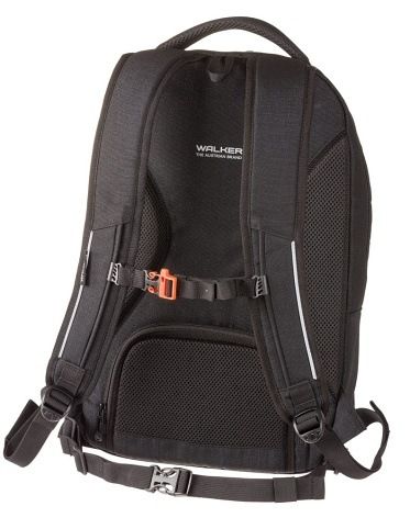 Moderní Studentský batoh WALKER COLLEGE je dvoukomorový batoh s přední kapsou uzavíranou na zip. Uvnitř této kapsy je bohatě další kapsa se zipem přes celou její šířku. Na ní je našitý organizér, který tvoří dvě otevřené kapsičky mezi nimiž jsou poutka na psací potřeby. Velká zadní komora je členěna polstrovanou kapsou na notebook velikosti 15" na níž je našitá otevřená kapsa na tablet. Obě kapsy uzavírá široká pruženka ukončená suchým zipem. Na protější straně je v horní části malá kasička a USB kabel, který vyúsťuje v USB port na vnější straně středového věnce. V hodní části středového věnce je samostatná kapsička na zip přístupná z venku. V horní části zadního dílu je široké pevné madlo. Druhá komora je jednoduchá s otevřenou kapsou přese celou šířku batohu. Obě komory se uzavírají zipem. Obvod přední kapsy a část nosných řemenů jsou lemovány reflexní paspulí pro lepší viditelnost při špatných světelných podmínkách. Zádová část má tvarované polstrování pro pohodlné nošení. Dolní bederní operka je řešena jako skrytá kapsa na zip s RFID (radiofrekvenční) ochranou. Úplně dole se nachází nastavitelný bederní pásek pro lepší stabilitu batohu na zádech studenta. Nosné řemeny jsou polstrovány a na spojovacím pásku řemenů je umístěna píšťalka pro výstražný hvizd. V horní části zádového dílu je připevněno jednoduché poutka na zavěšení. Po obou stranách batohu jsou rozšiřitelné boční kapsy. Dno je vyztužené, textilní. Zvláštnost: Pokud je kapsa batohu opatřena RFID ochranou, tak je zpravidla lemována speciálními ochrannými RFID vlákny, které dokáží zablokovat příchozí bezdrátové komunikace a zamezí tak nežádoucímu čtení choulostivých dat z Vašich kreditních, bankovních a jiných karet.