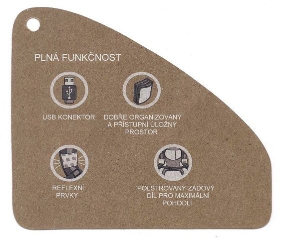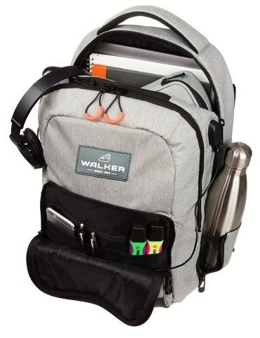 Moderní Studentský batoh WALKER COLLEGE je dvoukomorový batoh s přední kapsou uzavíranou na zip. Uvnitř této kapsy je bohatě další kapsa se zipem přes celou její šířku. Na ní je našitý organizér, který tvoří dvě otevřené kapsičky mezi nimiž jsou poutka na psací potřeby. Velká zadní komora je členěna polstrovanou kapsou na notebook velikosti 15" na níž je našitá otevřená kapsa na tablet. Obě kapsy uzavírá široká pruženka ukončená suchým zipem. Na protější straně je v horní části malá kasička a USB kabel, který vyúsťuje v USB port na vnější straně středového věnce. V hodní části středového věnce je samostatná kapsička na zip přístupná z venku. V horní části zadního dílu je široké pevné madlo. Druhá komora je jednoduchá s otevřenou kapsou přese celou šířku batohu. Obě komory se uzavírají zipem. Obvod přední kapsy a část nosných řemenů jsou lemovány reflexní paspulí pro lepší viditelnost při špatných světelných podmínkách. Zádová část má tvarované polstrování pro pohodlné nošení. Dolní bederní operka je řešena jako skrytá kapsa na zip s RFID (radiofrekvenční) ochranou. Úplně dole se nachází nastavitelný bederní pásek pro lepší stabilitu batohu na zádech studenta. Nosné řemeny jsou polstrovány a na spojovacím pásku řemenů je umístěna píšťalka pro výstražný hvizd. V horní části zádového dílu je připevněno jednoduché poutka na zavěšení. Po obou stranách batohu jsou rozšiřitelné boční kapsy. Dno je vyztužené, textilní. Zvláštnost: Pokud je kapsa batohu opatřena RFID ochranou, tak je zpravidla lemována speciálními ochrannými RFID vlákny, které dokáží zablokovat příchozí bezdrátové komunikace a zamezí tak nežádoucímu čtení choulostivých dat z Vašich kreditních, bankovních a jiných karet.