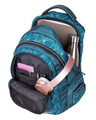 Studentský batoh WALKER FAME je dvoukomorový batoh s velkou přední kapsou uzavíranou na zip. Zadní komora má v horní části kapsičku na zip, na zadní části velkou otevřenou kapsu a vnitřní část je členěna zdvojenou přepážku, která tento prostor člení na tři samostatné části. Druhá komora je jednoduchá bez vnitřního členění. Přední velká kapsa má organizér navitý na kapse na zadní části. Organizér tvoří kapsička na mobil, síťovaná kapsička na zip a přihrádky na psací potřeby. V dolní části kapsy je reflexní paspule pro lepší viditelnost při špatných světelných podmínkách. Zádová část má ergonomické síťované polstrování. Široké nosné řemeny jsou opatřeny výškově nastavitelným spojovacím prsním páskem a reflexním páskem. V horní části je široké pevné madlo a vzadu pod ním poutko na pověšení. Po obou stranách jsou zdvojené kapsy s reflexní paspulí. Vnější menší kapsa je uzavíraná na zip, vnitřní větší je otevřená.