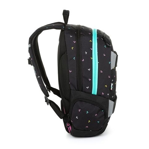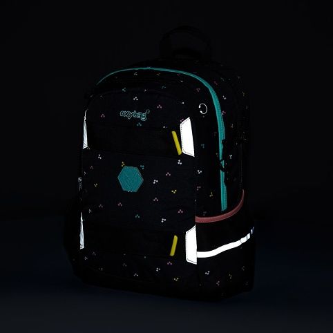 Studentský i volnočasový školní batoh řady OXY SPORT vyniká ergonomicky tvarovanými zády, nastavitelnými polstrovanými ramenními popruhy a hrudním popruhem, díky kterým se pohodlně nosí. Batoh se skládá ze dvou hlavních komor a jedné menší přední kapsičky opatřenými pevnými zipy a praktickými poutky. Uvnitř batohu je vyztužená kapsa na notebook do 15'', karabina na klíče a menší kapsa na drobnosti. Nechybí také boční kapsa na lahev na pití a řada reflexních prvků, díky kterým je batoh lépe viditelný. Batoh je ideální jak do školy pro školáky na druhém stupni tak i pro volnočasové aktivity studentů a dospělých. Rozměry: 46 x 32 x 15 cm. Objem: 27 l. Nosnost: 8 kg. Nízká hmotnost: ? 830 g.