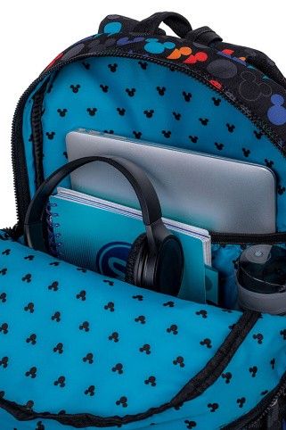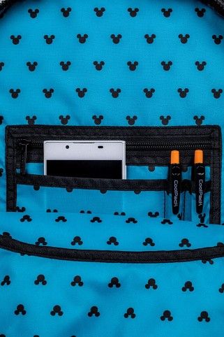 • uvnitř kapsa s organizérem - přihrádka se síťovinou se zapínáním na zip, místo na psací potřeby a otevřená kapsa;