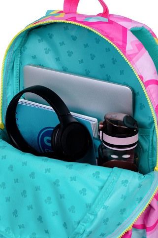 • uvnitř kapsa s organizérem - přihrádka se síťovinou se zapínáním na zip, místo na psací potřeby a otevřená kapsa;