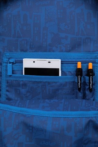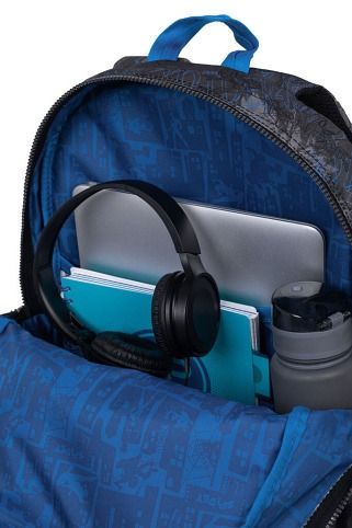 • uvnitř kapsa s organizérem - přihrádka se síťovinou se zapínáním na zip, místo na psací potřeby a otevřená kapsa;