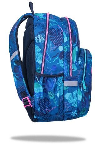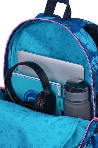 • uvnitř kapsa s organizérem - přihrádka se síťovinou se zapínáním na zip, místo na psací potřeby a otevřená kapsa;