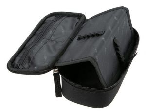 Kvalitní studentský penál WALKER CONCEPT je kombinací penálu, kde můžete ukládat psací potřeby do pruženkových úchytů a boxu, tam je můžete volně uložit. Na vnitřní části horní klopny je našita kapsa na zip. Pod ní jsou pak našity další dvě malé kapsičky. Na horní části je textilní nášivka s logem. Prostřední klopna je po rozlepení suchého zipu rozevíratelná. Na její horní i spodní straně je našito po deseti pruženkových poutek pro uložení psacích potřeb. Dolní část penálu pak složí jako box. Spodní strana penálu je z hnědého semiše.