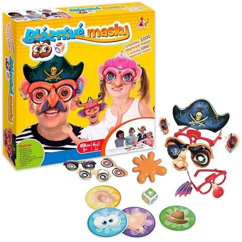 Obsah balení: 4x brýle 5x spona na nos 10x spona na uši 25x součást do masky + 1x symbol LOSER (5 archů) 4x hrací symbol (1 arch) 1x kostka Bzučák Věk: 5+ Počet hráčů: 2-4 hráči Příprava hry: Opatrně vyjměte 4 hrací symboly z archu. Připevněte průhledné spony na uši a nosy tak, jak je znázorněno na obrázcích níže. Každý hráč si nasadí jedny brýle. Umístěte bzučák doprostřed hrací plochy se 4 hracími symboly umístěnými kolem a rozprostřete jednotlivé součásti tváří vedle nich, abyste mohli tvořit bláznivé masky. Průběh hry: Hráči se střídají v hodu kostkou, ale reagují a hrají společně. Nejmladší hráč začíná a pokračuje se po směru hodinových ručiček. Když jsi na řadě, hoď kostkou. Pokud padne NOS, OČI, KLOUBOUK nebo UCHO, první hráč, který zasáhne kartu se správným symbolem, vyhrává kolo. Vítěz kola dostane možnost vybrat si součást masky z připravené hromádky a umístit ji na brýle jakéhokoliv hráče, který tento kousek na sobě ještě nemá. Pokud hodíš na kostce brýle, hráč po tvojí levé straně vybere jakoukoliv součást obličeje, kterou ještě nemáš, a nasadí ti ji na brýle. Pokud na kostce padne symbol bzučáku, první kdo ho zmáčkne, si může vybrat: vybrat z hromádky jakýkoliv kousek obličeje a umístit ho na brýle jakéhokoliv hráče, nebo sundat si z brýlí jakýkoliv kousek a vrátit ho zpět do hromádky. Když vyhraješ kolo a každý z hráčů má již nasazenou část, která padla na kostce, můžeš stejnou část odebrat ze svých brýlí a vložit ji zpět do hromádky. Pokud má hráč brýle úplně plné, prohrál a musí si sednout v bláznivé masce bokem a dívat se, jak ostatní dohrávají. LOSER! Jak vyhrát: Hra končí, když zbude už jenom jeden hráč, který ještě nemá plné brýle. Tento hráč vítězí a má právo si udělat fotografii ostatních hráčů v bláznivých maskách se znamením pro LOSERY! Vyzkoušej 1000 bláznivých masek a užij si spoustu zábavy!