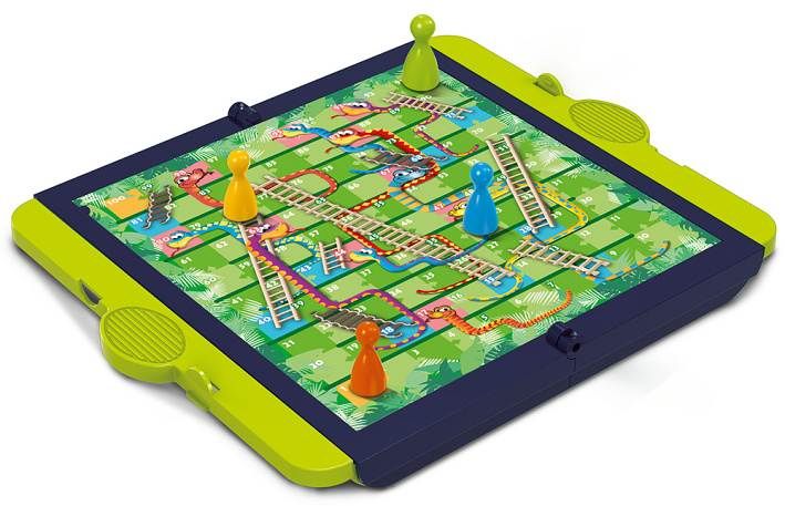 STUDO GAMES - Hadi a žebříky Klasická desková hra pro celou rodinu plná vzrušujících výstupů a pádů. Obsah balení: Hrací deska s čísly 1-100 Hrací figurky různých barev Hrací kostka Návod ke hře Cíl hry: Dostat se jako první přesným hodem na políčko číslo 100. Základní pravidla: Každý hráč si vybere figurku své barvy Hráči se střídají v házení kostkou Figurka se posouvá o počet políček podle hodu Po žebříku se stoupá nahoru Po hadovi se klouže dolů Speciální situace: Žebřík: Při přistání na spodní části vystoupáte nahoru Had: Při přistání na hlavě sklouzněte k ocasu Obsazené políčko: Přesuňte se na další volné pole Více hráčů: Pokud není místo, skočte na další volné pole Důležitá pravidla: Nelze nastoupit na žebřík ani hada uprostřed Na políčko 100 musíte přijít přesným hodem Při přistání na obsazeném poli se přesunete vpřed Vítězství: Vyhrává hráč, který jako první dosáhne přesným hodem políčka číslo 100. Zábavná hra pro celou rodinu, která učí děti počítat a vyrovnávat se s úspěchy i nezdary.