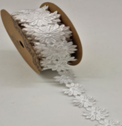 Dekorační stuha s květinovým vzorem – bílá, 3D efekt, 2,5 cm