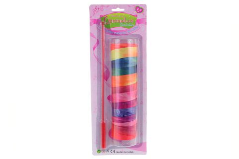 Barevná gymnastická stuha. Délka tyče cca 35 cm. Materiál plast. Baleno na kartě. Rozměry balení cca 43x16x2 cm. Věk 3+