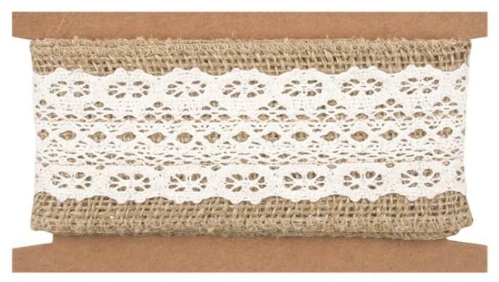 Stuha jutová s krémovou krajkou šířka 6 cm, 1 m /2837/