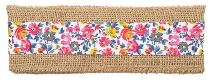 Stuha jutová s růžovými kytkami šířka 6 cm, 2 m /2841/