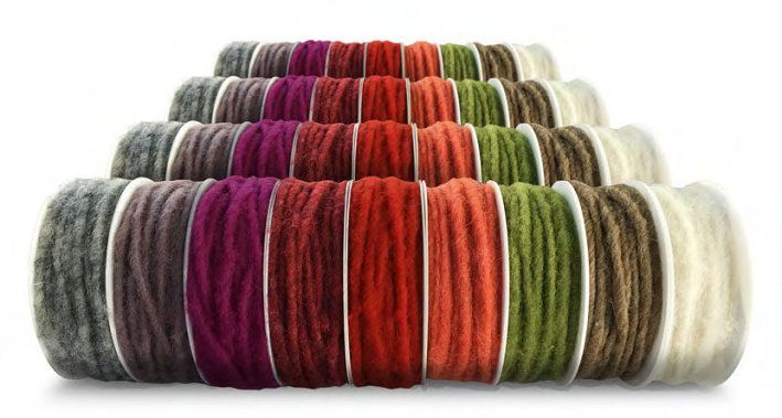 Dekorační provázek z vlny na špulce v několika barevných provedeních.