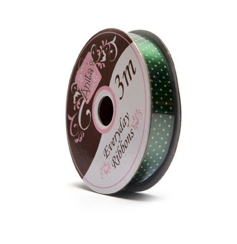 tmavě zelená saténová stuha s drobnými bílými puntíky