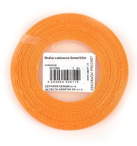 Stuha saténová 6 mm, oranžová, 32 m