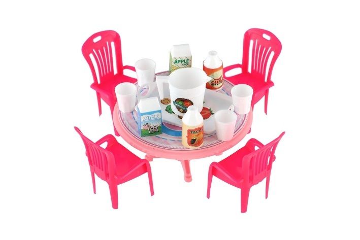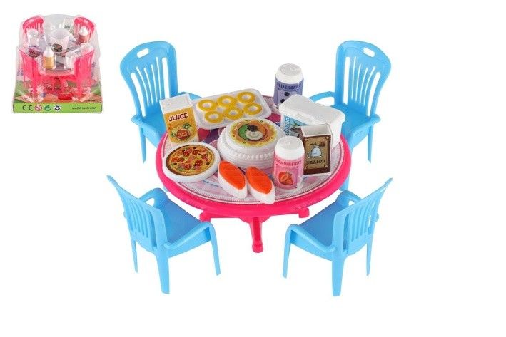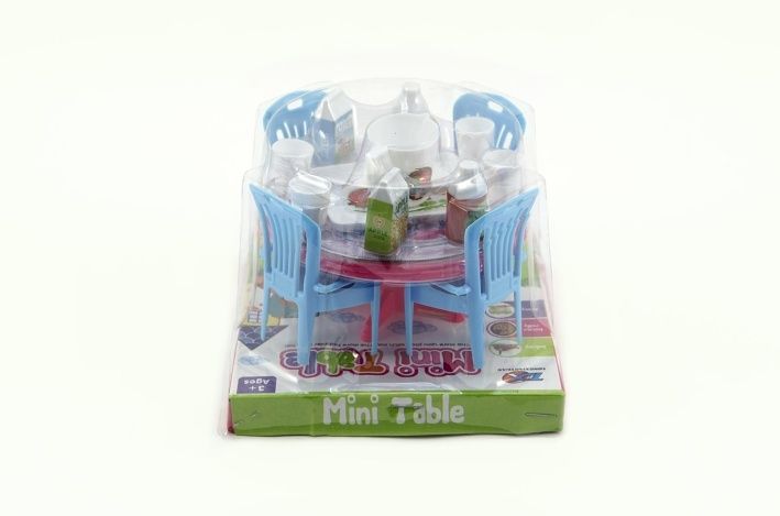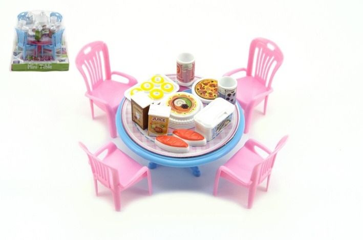 Stůl a židle s doplňky plast 12cm asst v blistru 3 barvy