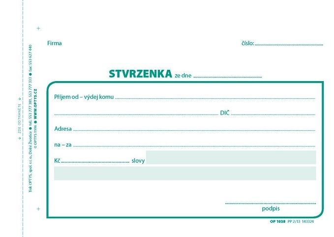 - PAPÍRNICTVÍ / TISKOPISY / ÚČETNÍ A DAŇOVÉ DOKLADY / Stvrzenky / A6 / OPTYS