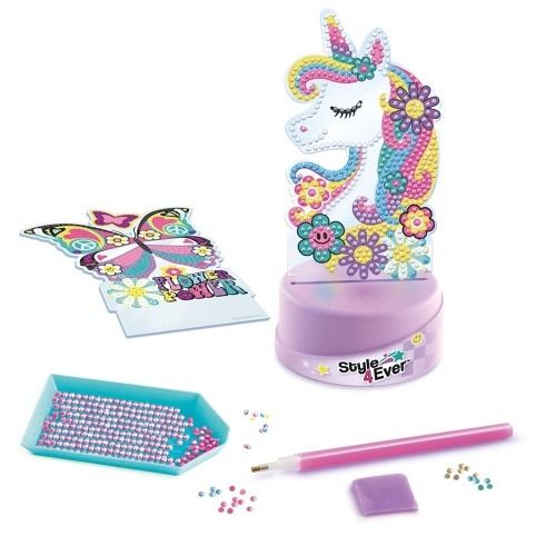 Přineste do svého pokoje magii s lampičkou Jednorožce z diamantovách kamínků! Tato kreativní svítící postavička je ideální pro všechny malé umělce, kteří se rádi zapojují do tvoření a zároveň milují kouzelné dekorace. Lampička Jednorožec, kterou si můžete ozdobit podle vlastních představ, přináší nejen zábavu, ale i krásné světlo, které vytvoří útulnou atmosféru. Balení obsahuje: šablonu jednorožce a motýla, kamínky, tácek, vosk, aplikátor/pero, podstavec. Návod na použití uvnitř – snadný postup pro kreativní zábavu. Vyžaduje 2× AA baterie (nejsou součástí balení). Vhodné pro děti od 6 let. Na baterie: 3x AA (nejsou součástí balení)