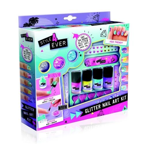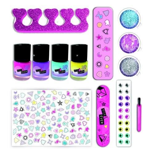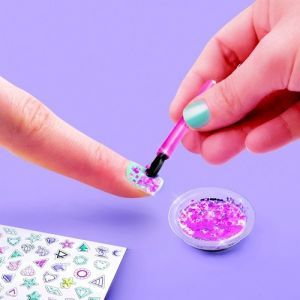Buďte cool. Buďte originální. Udělejte si opravdu jedinečné nehty. Je to jen na vaší fantazii, zda použijete pouze jeden lak, nebo budete kombinovat víc barev najednou. Nebojte se improvizovat. Ozdobte své nehty třpytkami nebo samolepkami. Není nehet jako nehet. Každý může být jedinečný. Obsahuje: 4 laky na nehty, 1 arch s kamínky, 2 archy se samolepkami, 1oddělovač prstů, 3 nádobky s glitry, 1 pilníček, 1 štěteček. Věk: 8 +
