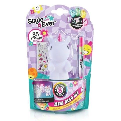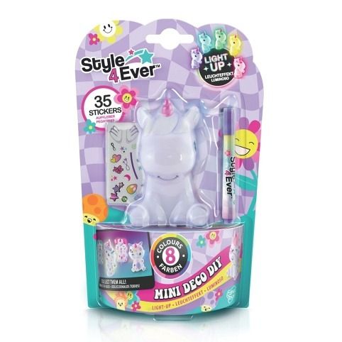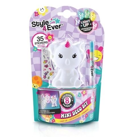 Oživte svůj prostor s touto jedinečnou svítící figurkou Style4Ever, která nabízí nejen krásné jemné světlo, ale také spoustu možností pro vlastní kreativitu! Na výběr je 12 různých assortů – 6 jednorožců, 2 koaly, 2 spi, 2 kočky. V každém balení naleznete samolepky a fix pro dozdobení figurky podle vašeho vlastního stylu. Vytvořte si tak jedinečný kousek, který bude dokonale ladit s vaším interiérem. Figurka svítí 8 barvami. Jsou potřeba baterie 3× LR54 (jsou součástí balení). Doporučeno pro děti od 6ti let. Na baterie: 3x LR54 (jsou součástí balení)